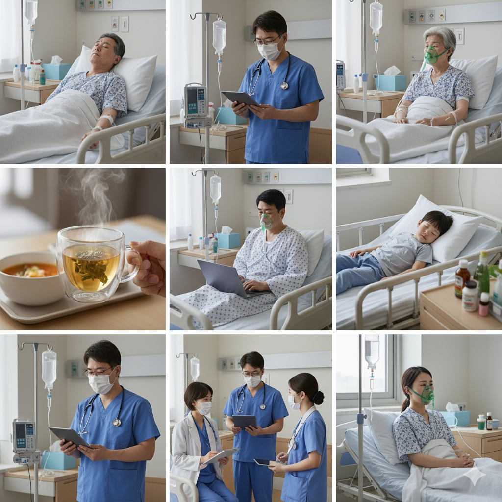 독감(인플루엔자)은 단순한 감기보다 바이러스 감염 강도가 훨씬 높습니다. 수액 치료는 탈수나 피로 회복에는 도움이 되지만, 바이러스 자체를 제거하지는 못합니다.